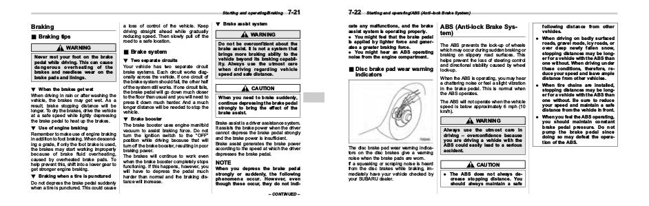 vehicle beyond its braking capability. Always use the utmost care
