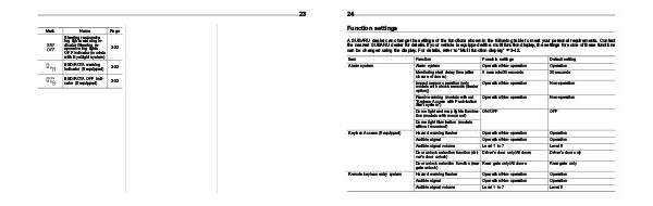 Item Function Possible settings Alarm system Alarm system Operation/Non-operation Operation