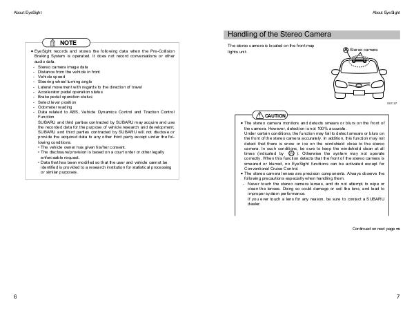 smeared or blurred, no EyeSight functions can be activated except for