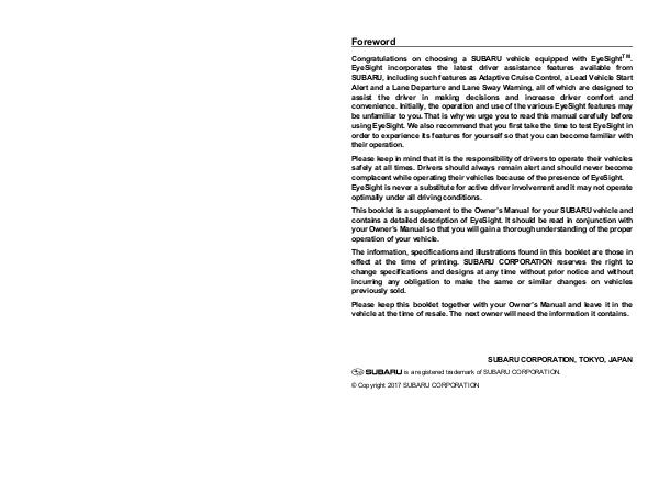 Subaru Crosstrek Manuals 2018 Crosstrek EyeSight® Driving Assist Manual | Page 2