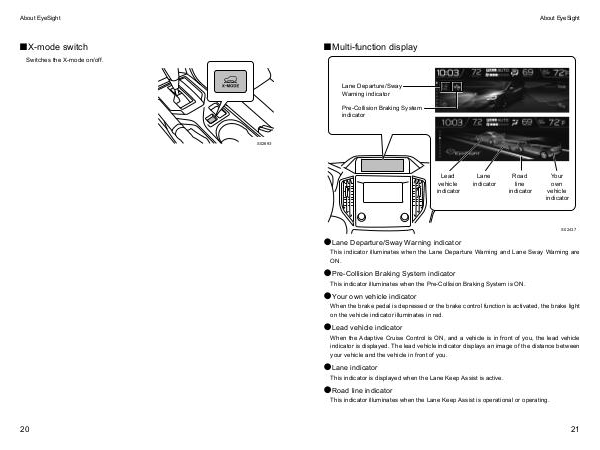 About EyeSight ■ X-mode switch Switches the X-mode on/off. S02693 20
