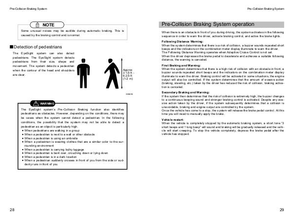 pedestrians. The EyeSight system detects