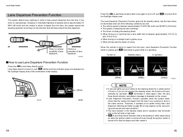 The Lane Departure Prevention Function goes into the standby status, and the lane indica-
