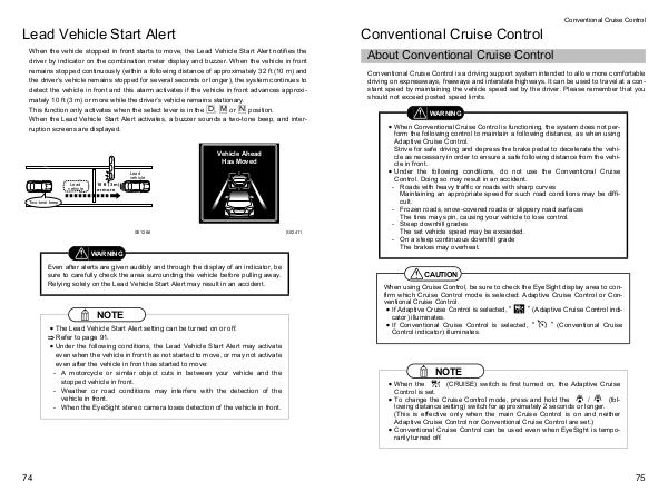 � Conventional Cruise Control can be used even when EyeSight is temporarily |