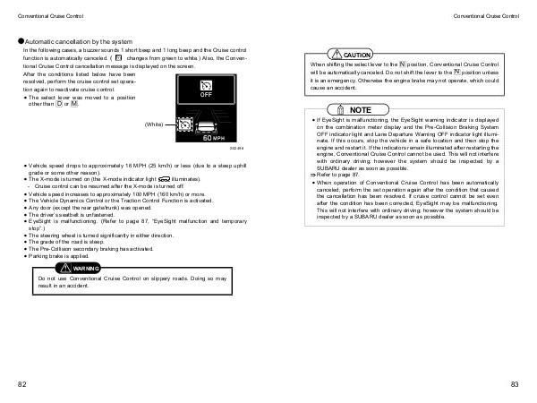 - Cruise control can be resumed after the X-mode is turned off.