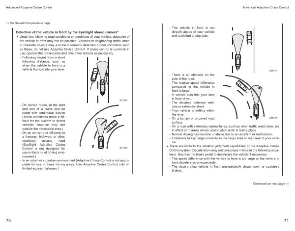 • There are limits to the situation judgment capabilities of the Adaptive Cruise Control system . Deceleration may not take place in time in the following situations . Depress the brake pedal to decelerate the vehicle if necessary . - The speed difference with the vehicle in front is too large or the vehicle in front decelerates unexpectedly . - The decelerating vehicle in front unexpectedly slows down or suddenly brakes .