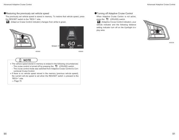 ( Adaptive Cruise Control indicator ), your vehicle indicator and the following distance setting indicator turn off on the EyeSight display area .