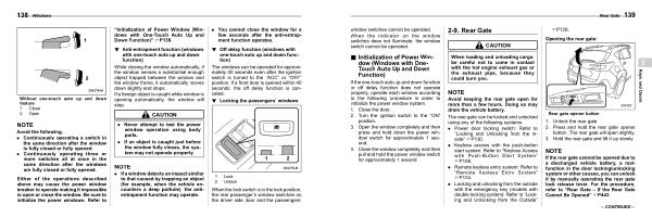 Either of the operations described above may cause the power window breaker to operate making it impossible to open or close the window . Be sure to initialize the power windows . Refer to