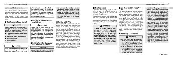 Your vehicle should not be modified other than with genuine SUBARU parts and accessories . Other types