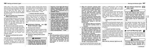 . If the electronic parking brake indicator light flashes , the electronic parking brake system may be malfunctioning . Immediately stop your vehicle in a safe location , use tire stops under the tires to prevent the vehicle from moving and contact your SUBARU dealer . For details , refer to “ Electronic Parking Brake ” FP345 .