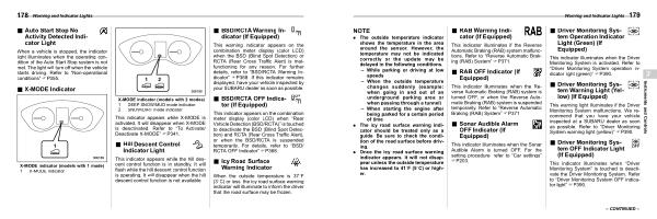 Warning and Indicator Lights 179 |