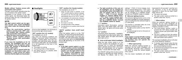 . The light sensitivity of the auto on / off headlights can be changed by operating the center information display . For details , refer to “ Car settings ” FP203 ( 11.6-inch display models ) or “ Vehicle setting icons ” FP221 ( dual 7.0-inch display models ). Also , the setting can be changed by a SUBARU dealer . Consult your SUBARU dealer for details .