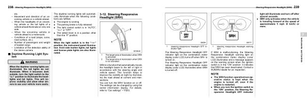 If SRH is malfunctioning , the Steering Responsive Headlight warning light on the combination meter display ( color LCD ) illuminates and a message appears on the warning screen when the ignition switch is in the “ ON ” position . It indicates that SRH has been deactivated . Contact a SUBARU dealer for an inspection .