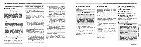 . There are some general precautions when starting the engine . Carefully read the precautions described in “ General Precautions When Starting / Stopping Engine ” FP313 .
