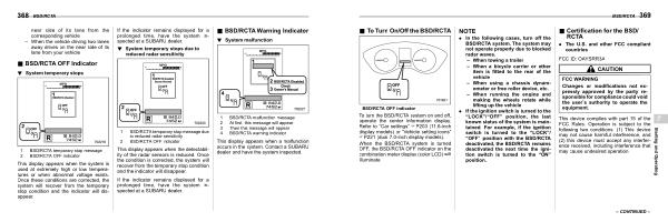 1 BSD / RCTA temporary stop message 2 BSD / RCTA OFF indicator