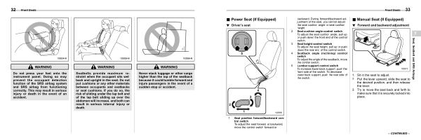 backward . During forward / backward adjustment of the seat , you cannot adjust the seat cushion angle or seat cushion height .