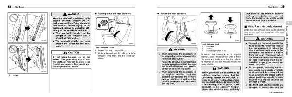 When you return the seatback to its original position , check that the unlocking marker on the lock release knob is not visible . Also , shake the seatback slightly to confirm that it is securely fixed in place . If the seatback is not securely fixed in place , the seatback may suddenly