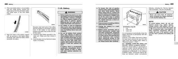 Securely retain both ends of the rubber with the stoppers on the plastic support ends . If the rubber is not retained properly , the wiper may scratch the rear window glass .