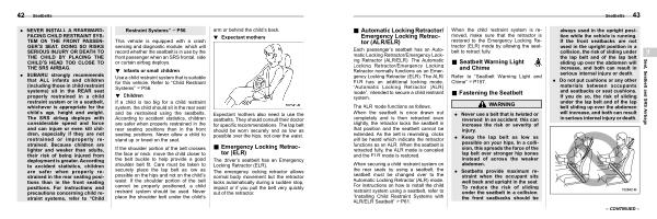 . NEVER INSTALL A REARWARD- FACING CHILD RESTRAINT SYS- TEM ON THE FRONT PASSEN- GER ’ S SEAT . DOING SO RISKS SERIOUS INJURY OR DEATH TO THE CHILD BY PLACING THE CHILD ’ S HEAD TOO CLOSE TO THE SRS AIRBAG .