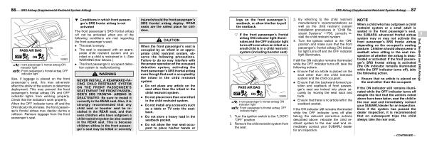 When the front passenger ’ s seat is occupied by an infant in an appropriate child restraint system , observe the following precautions . Failure to do so may interfere with the proper operation of the occupant detection system , activating the front passenger ’ s SRS frontal airbag even though that seat is occupied by the infant in the child restraint system .