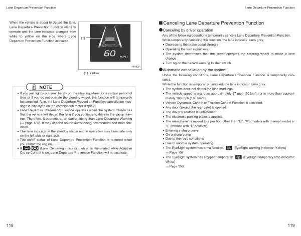 ●Canceling by driver operation Any of the following operations temporarily cancels Lane Departure Prevention Function . While temporarily canceling this function , the lane indicator turns gray .