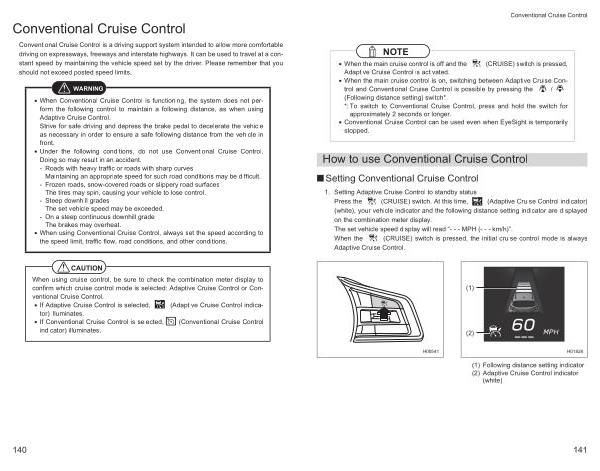 • Conventional Cruise Control can be used even when EyeSight is temporarily stopped .