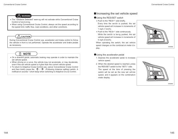 • The “ Obstacle Detected ” warning will not activate while Conventional Cruise Control is functioning .