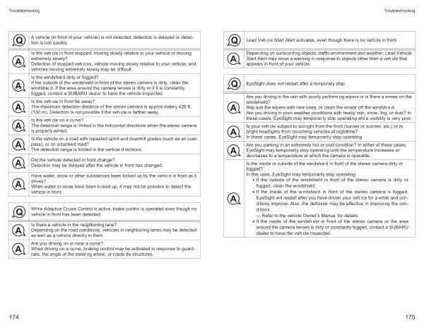 Is the inside or outside of the windshield in front of the stereo camera dirty or fogged ? In this case , EyeSight may temporarily stop operating .
