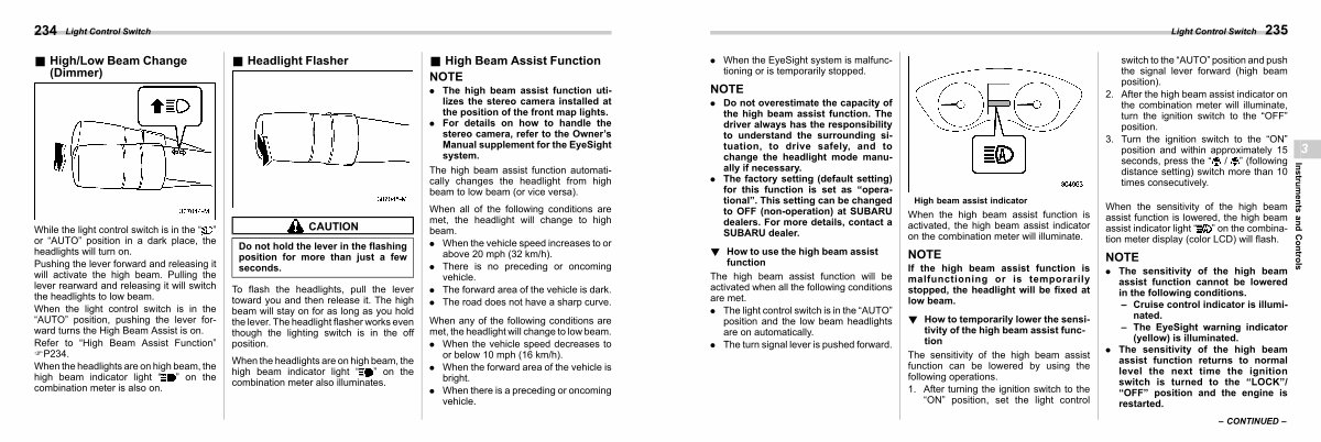 . The sensitivity of the high beam assist function cannot be lowered in the following conditions. – Cruise control indicator is illuminated. – The EyeSight warning indicator
