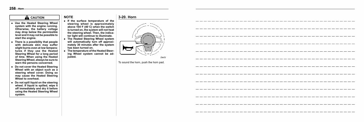 . There is a possibility that people with delicate skin may suffer slight burns even at low temperatures if they use the Heated Steering Wheel for a long period of time. When using the Heated Steering Wheel, always be sure to warn the persons concerned.