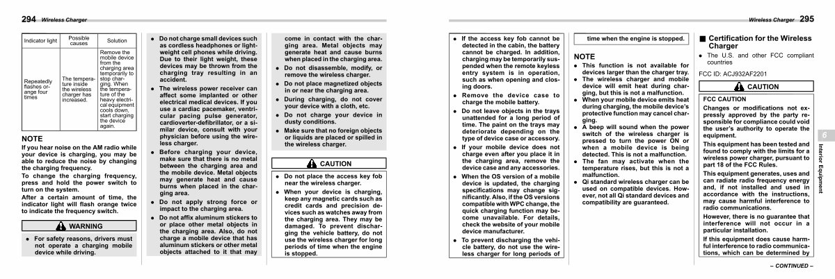 . Do not place the access key fob near the wireless charger.