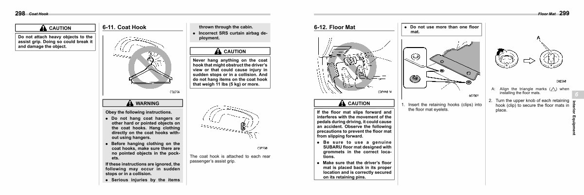 . Be sure to use a genuine SUBARU floor mat designed with grommets in the correct locations.