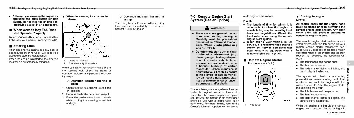 . When taking your vehicle in for service, it is recommended that you inform the service personnel that your vehicle is equipped with a remote engine start system.