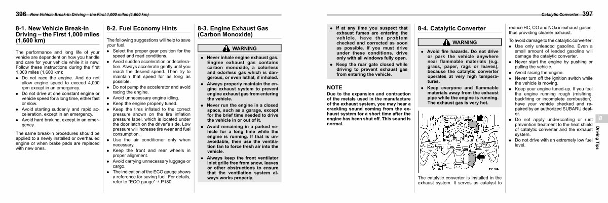 8-1. New Vehicle Break-In Driving – the First 1,000 miles( 1,600 km) s08aa
