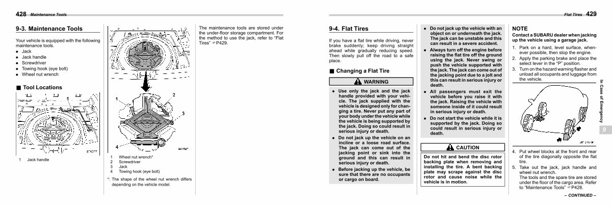 Your vehicle is equipped with the following maintenance tools.