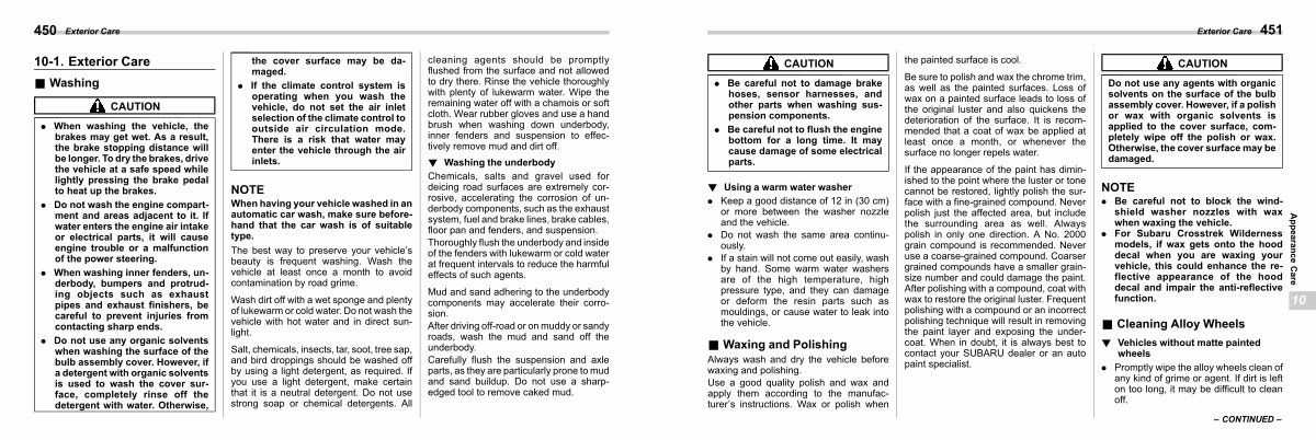 . For Subaru Crosstrek Wilderness models, if wax gets onto the hood decal when you are waxing your vehicle, this could enhance the reflective appearance of the hood decal and impair the anti-reflective function.