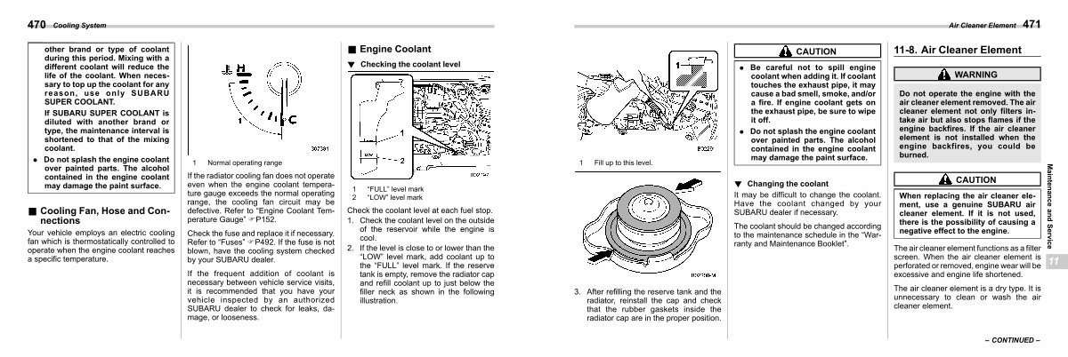 It may be difficult to change the coolant. Have the coolant changed by your SUBARU dealer if necessary.