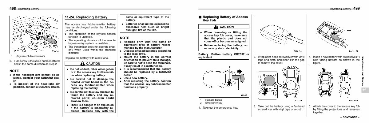 . It is recommended that the battery should be replaced by a SUBARU dealer.. Use a new battery.. After replacing the battery, confirm that the access key fob / transmitter functions properly.