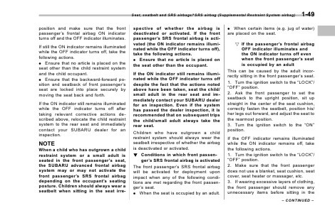 small adult in the rear seat and immediately contact your SUBARU dealer
