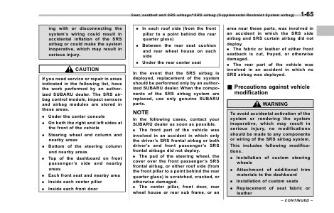 the work performed by an authorized SUBARU dealer. The SRS airbag control module, impact sensors