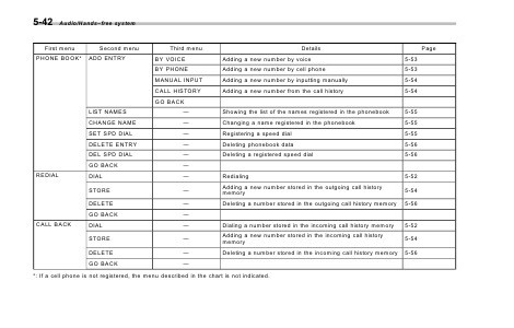 *: If a cell phone is not registered, the menu described in the chart is not indicated.