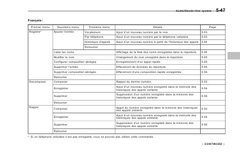 *: Si un téléphone cellulaire n’est pas enregistré, vous ne pouvez pas utiliser cette commande.