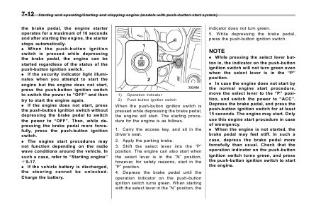 Starting and operating/Starting and stopping engine (models with push–button start system)