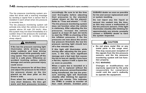 Starting and operating/Tire pressure monitoring system (TPMS) (U.S.–spec. models)