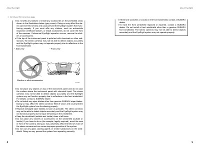 of the cameras. If abnormal EyeSight operation occurs, remove the stickers or accessories.