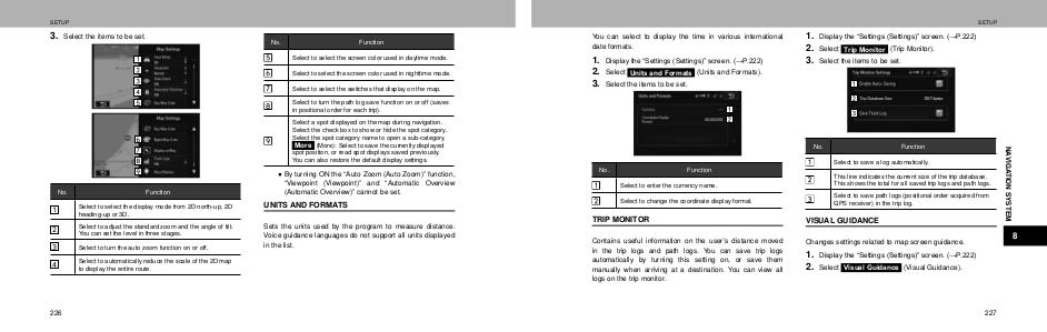 Changes settings related to map screen guidance.