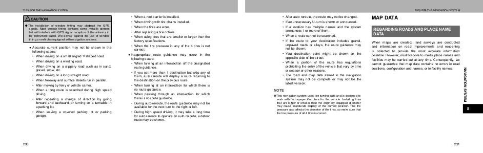 may cause inaccurate display of the current position. The tire