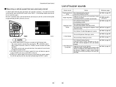 vehicle speed, press the RES/SET switch to the “RES/+”. (The EyeSight display area shows