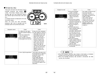 EyeSight temporary stop indicator