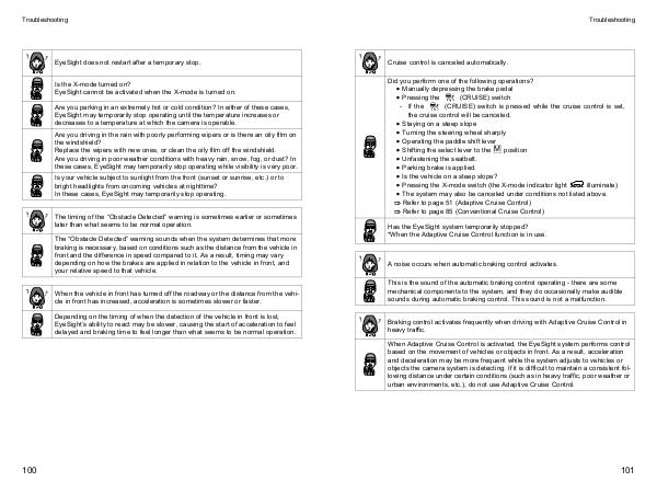Has the EyeSight system temporarily stopped? * When the Adaptive Cruise Control function is in use.